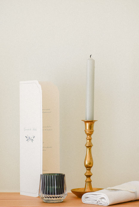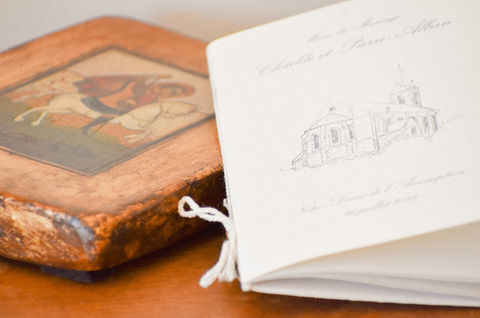Papier Blanc Aquarelle 220g/m² - Illustration et mise en page by Leauvive Papeterie - Typographie à l'anglaise - Format Triptyque avec encoches et carton d'invitation carré.